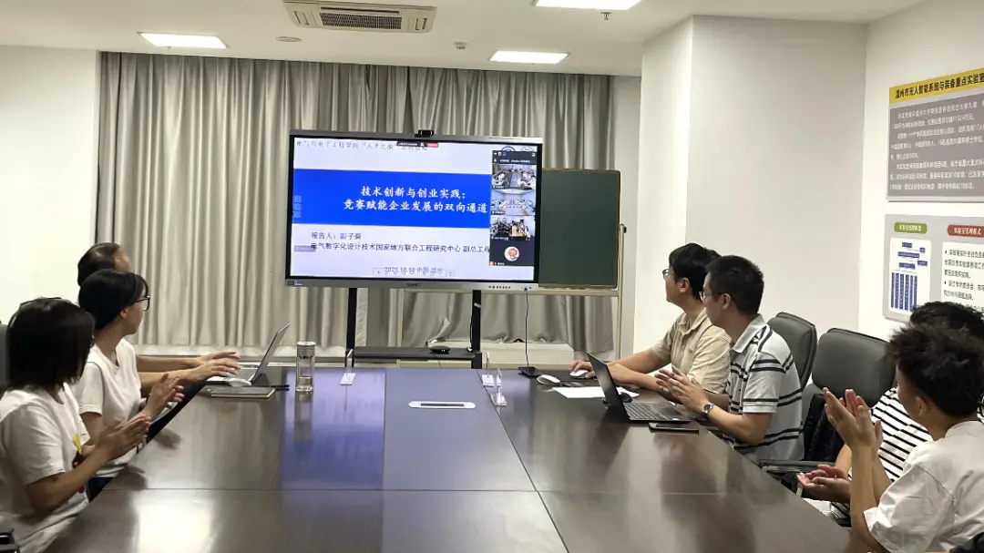 在学院“教工之家/校友之家”共享空间分会场,朱海永副院长则围绕“挑战杯赛事分享”展开专题交流,从赛事概况、学院获奖成果、优秀作品解析、申报材料筹备、实战经验总结及学生成长收获六个方面系统分享,鼓励师生以赛促教、以赛促研,推动教学科研与产业需求精准对接。